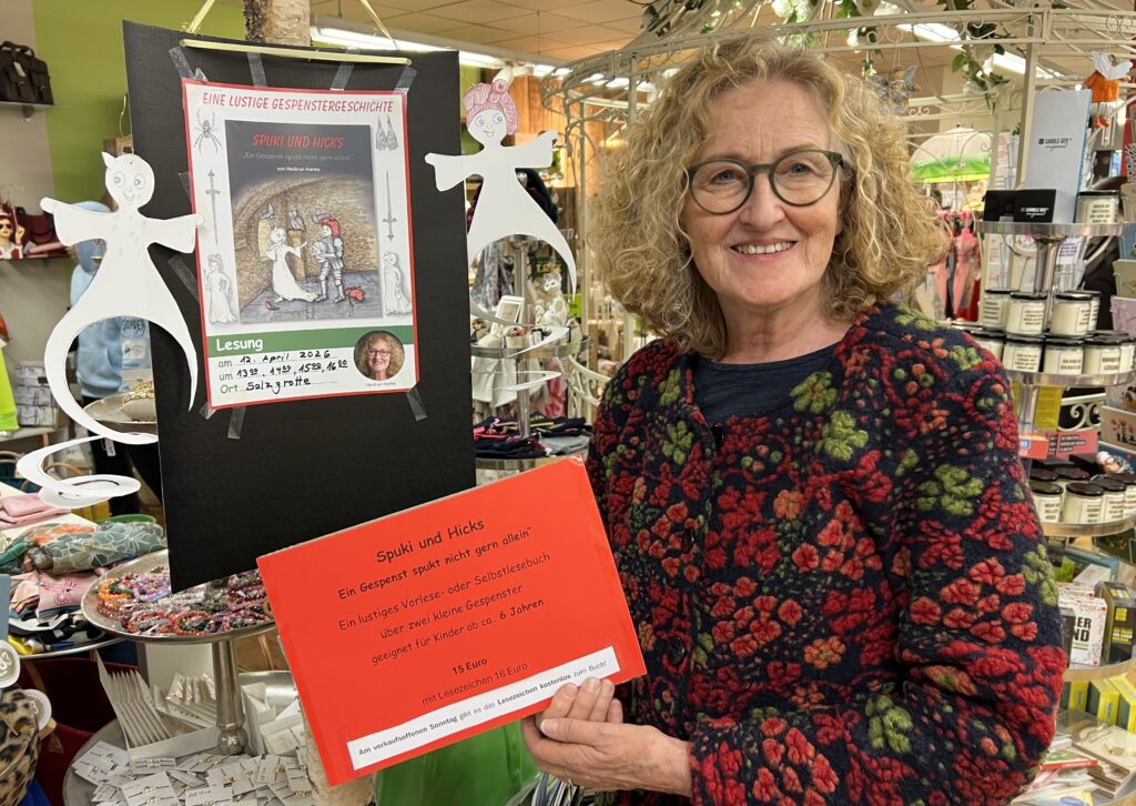 Zum verkaufsoffenen Sonntag erhielt ich die Einladung, im Geschäft Primavera – dem Duft-, Tee- und Geschenkeladen in Schömberg, einen kleinen Bücherstand aufzubauen. Außerdem durfte ich dort in der wunderschönen Salzgrotte mehrere Lesungen aus „Spuki und Hicks“ halten – natürlich wie immer mit Musik. In bequemen Liegestühlen lauschten Kinder und Erwachsene im schummrigen Licht der lustigen Gespenstergeschichte und ließen sich von der besonderen Stimmung verzaubern.